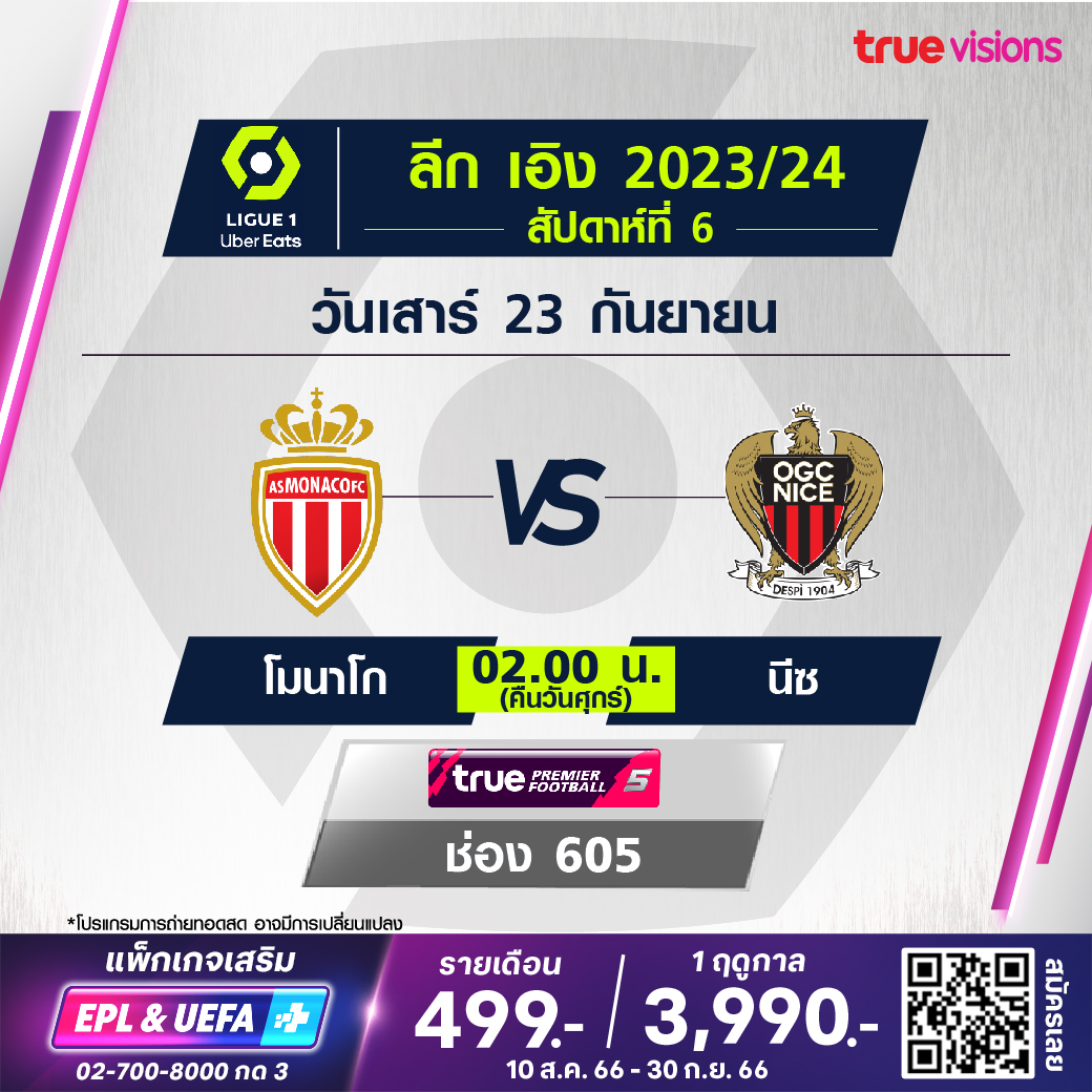 Monaco vs Nice เวลา 02.00-04.00 ทางช่อง TPF 5 (605)