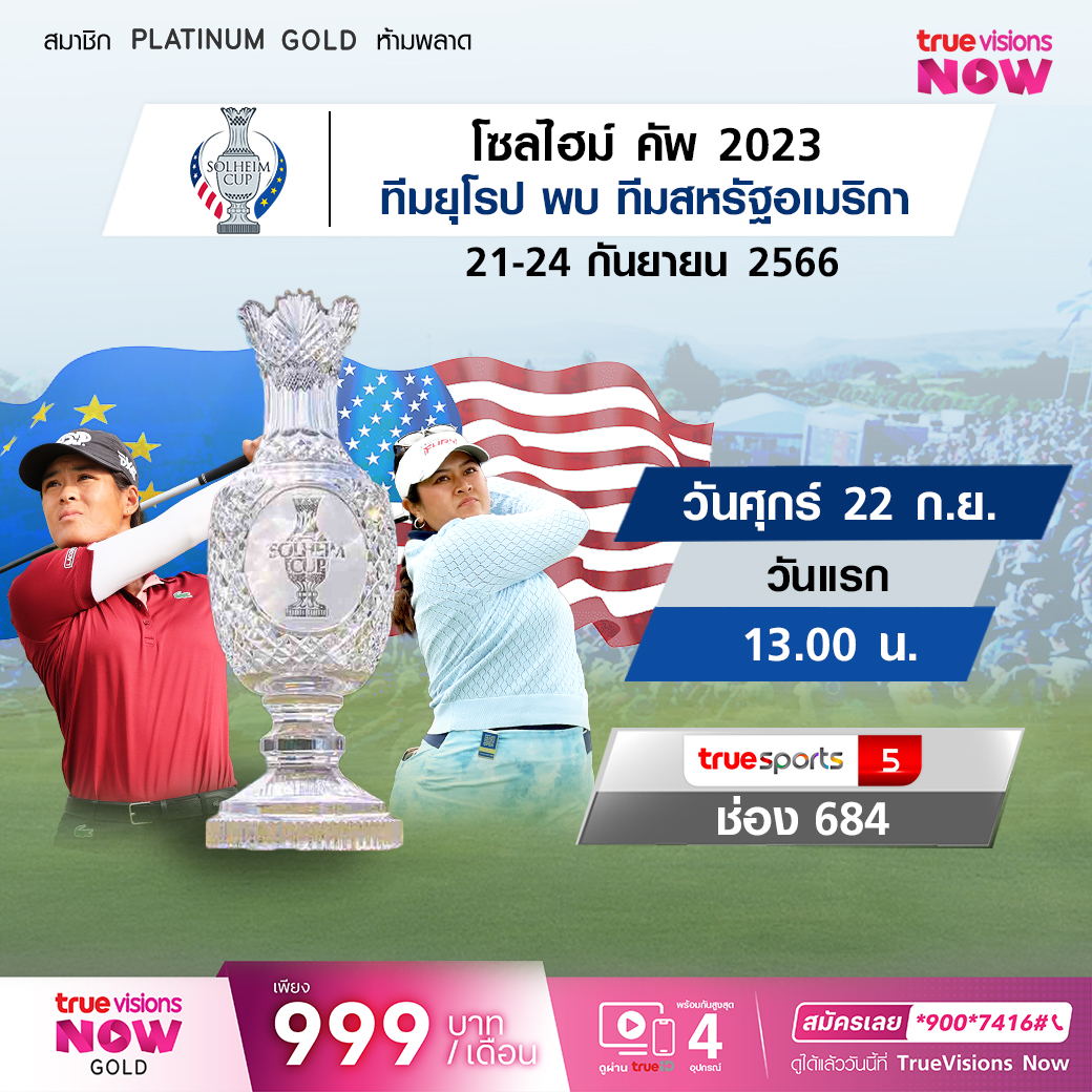 สองปีแห่งการรอคอยสิ้นสุดลงแล้ว กับศึกแห่งศักดิ์ศรีของกอล์ฟประเภททีมหญิง รายการที่ยิ่งใหญ่ เดอะ โซลไฮม์ คัพ 2023 แฟนๆ จะได้สัมผัสกับบรรยากาศและความเร้าใจของการต่อสู้ ของสองทีมจากสองทวีป ยุโรป เจ้าภาพปักหลักลุ้นแชมป์ ที่อันดาลูเซีย ประเทศสเปน พบทีมเยือนอย่างสหรัฐอเมริกา สดครบทุกแมตช์ 3 วันเต็ม ใครจะเป็นแชมป์ สด เอ็กซ์คลูซีฟ ชมสด ทาง ทรูวิชั่นส์ ที่เดียว