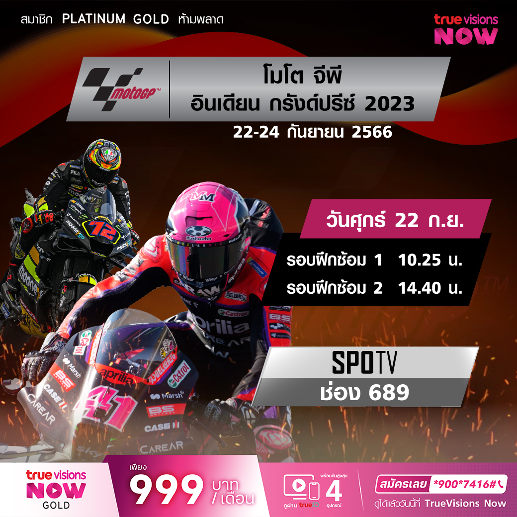 มันส์กันต่อเนื่องสำหรับศึกเจ้าความเร็ว จักรยานยนต์ทางเรียบชิงแชมป์โลก โมโต จีพี สนามที่ 13 ของฤดูกาล กับปรากฏการณ์ครั้งแรกในการรับหน้าเสื่อเจ้าภาพของประเทศอินเดีย ในรายการสุดยิ่งใหญ่ อินเดียน กรังด์ปรีซ์ 2023 สดทุกช่วงสำคัญ ของการแข่งขัน จากสนาม Buddh อินเตอร์เนชั่นแนล เซอร์กิต สด ครบ จุใจทั้ง 3 รุ่น ชมสด ทาง ทรูวิชั่นส์