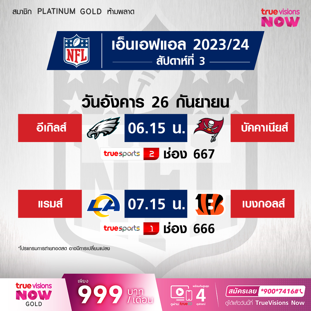วันอังคาร 26 ก.ย. Rams Vs Bengals เวลา 07.15 ทางช่อง TS 1 (666)