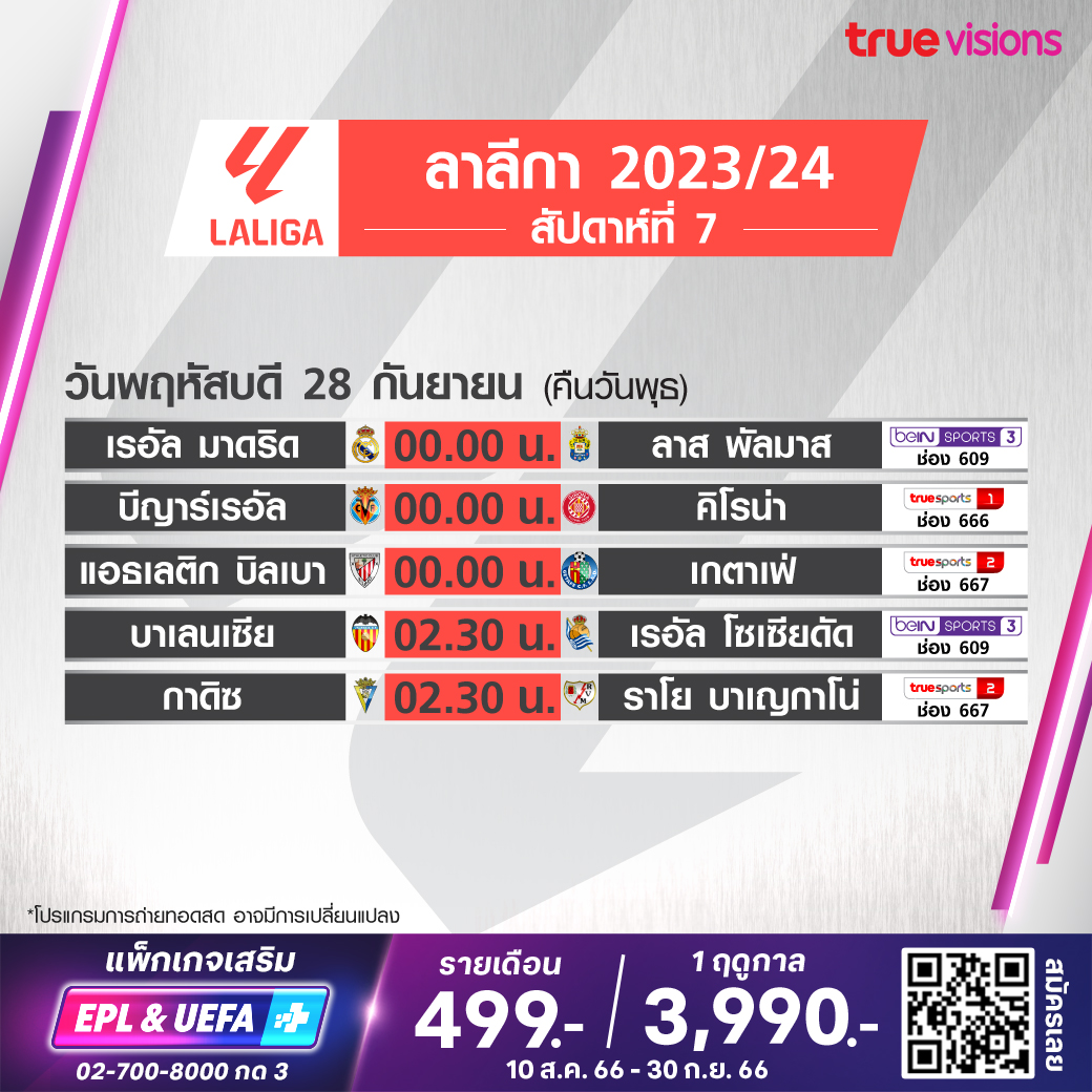 Cadiz vs Rayo เวลา 02.30-04.30 ทางช่อง TS 2 (667)