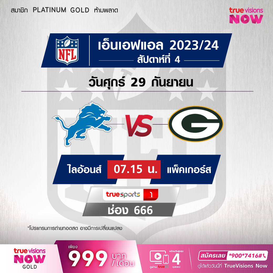 วันศุกร์ 29 ก.ย. Lions Vs Packers เวลา 07.15 ทางช่อง TS 1 (666)