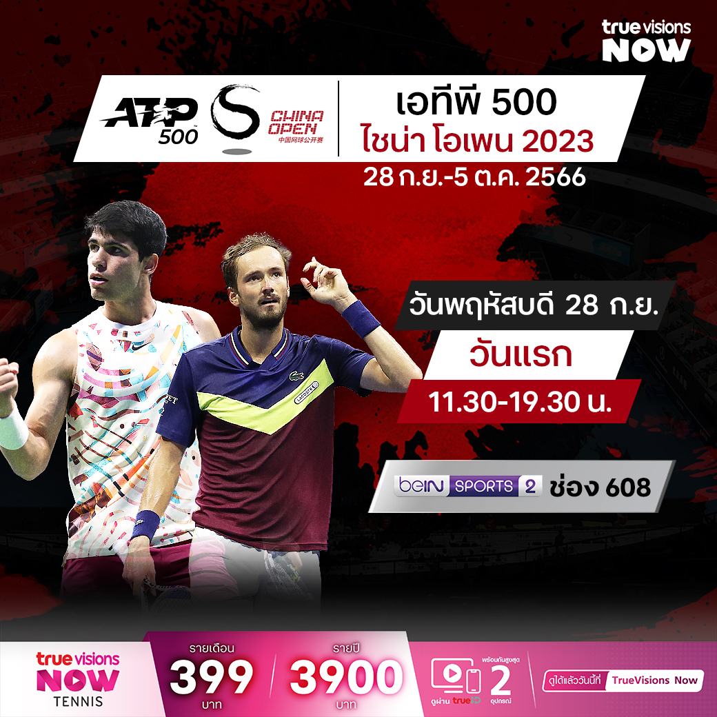 เทนนิส เอทีพี เวิลด์ ทัวร์ เคลื่อนทัพมาแข่งรายการสำคัญในสัปดาห์นี้ที่มหานครปักกิ่ง เมืองหลวงของประเทศจีน จะเป็นสังเวียนการดวลของนัก เทนนิสชายระดับท็อป ในรายการระดับ 500 ซีรี่ส์ ไชน่า โอเพ่น 2023 ที่สนาม ปักกิ่ง โอลิมปิก กรีน เทนนิส เซนเตอร์ ชมสดจุใจ รอบแรก ถึงรอบชิงชนะเลิศ ชมสด ทาง ทรูวิชั่นส์ ที่เดียว