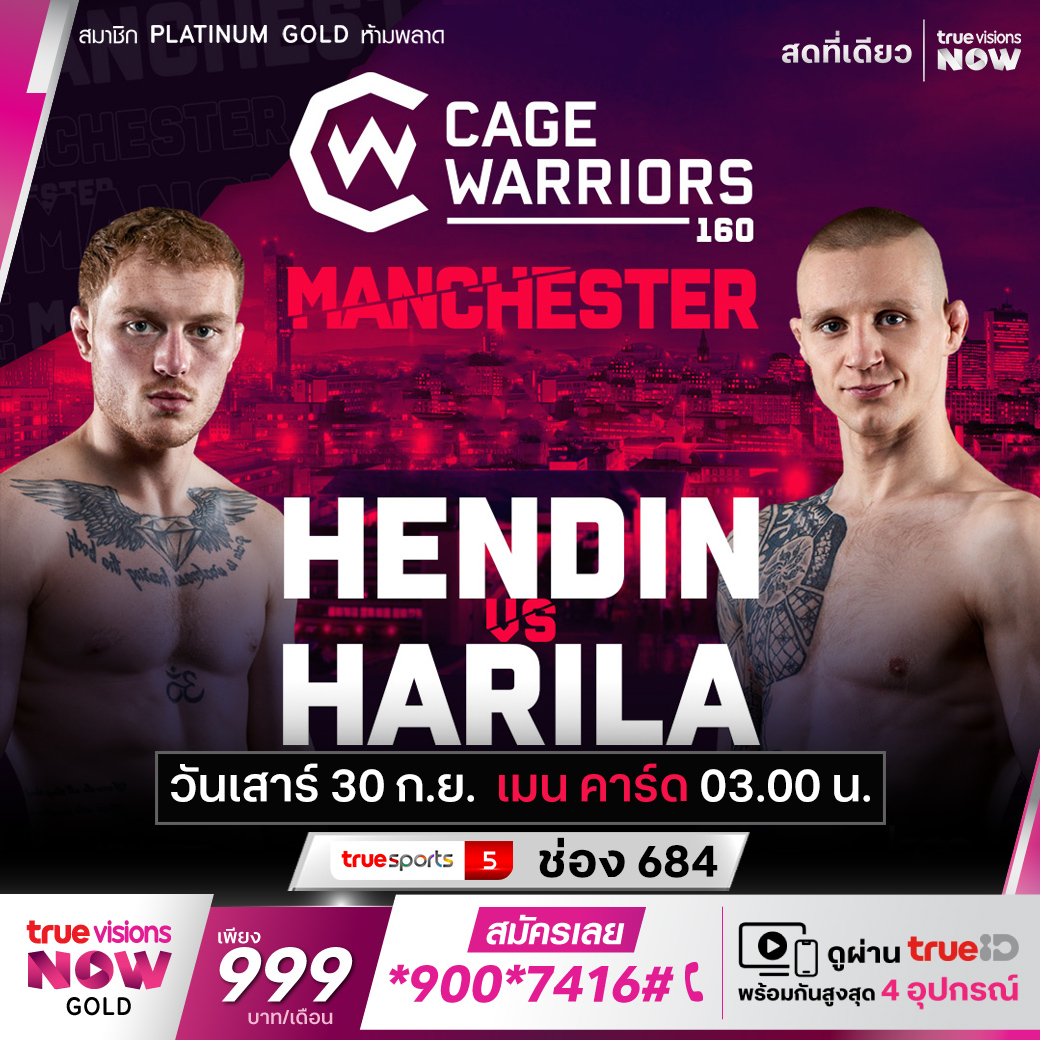 อีกหนึ่งศึกสำคัญของการต่อสู้แบบเอ็มเอ็มเอ ที่กำลังได้รับความนิยมอย่างมากในยุคนี้ กับศึก เคจ วอร์ริเออร์ส ที่บรรดานักสู้พันธุ์แกร่งแย่งกันเป็นแชมป์ สัปดาห์นี้ แฟนๆ จะได้ชม เคจ วอร์ริเออร์ส 160 จากแมนเชสเตอร์ ประเทศอังกฤษ คู่นำของรายการในรุ่นแบนตั้มเวต เจมส์ เฮนดิน ปะทะ โทไบอัส ฮาริล่า พร้อมกับคู่มันส์ๆ อีก หลายคู่ สด เอ็กซ์คลูซีฟ ที่ ทรูวิชั่นส์