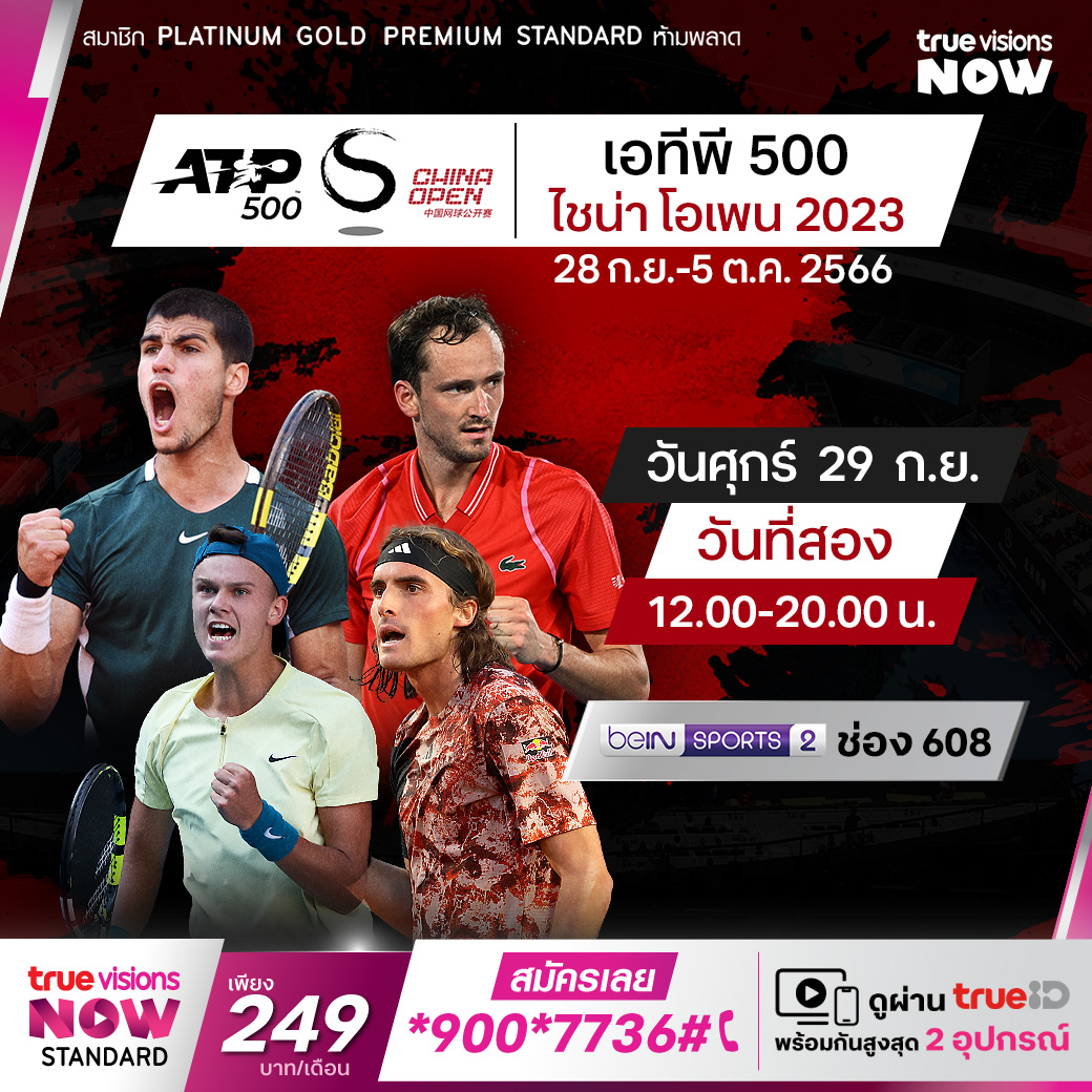 เทนนิส เอทีพี เวิลด์ ทัวร์ เคลื่อนทัพมาแข่งรายการสำคัญในสัปดาห์นี้ที่มหานครปักกิ่ง เมืองหลวงของประเทศจีน ในรายการระดับ 500 ซีรี่ส์ ไชน่า โอเพ่น 2023 ที่สนาม ปักกิ่ง โอลิมปิก กรีน เทนนิส เซนเตอร์ ชมสดจุใจ รอบแรก ถึงรอบชิงชนะเลิศ ชมสด ทาง ทรูวิชั่นส์ ที่เดียว