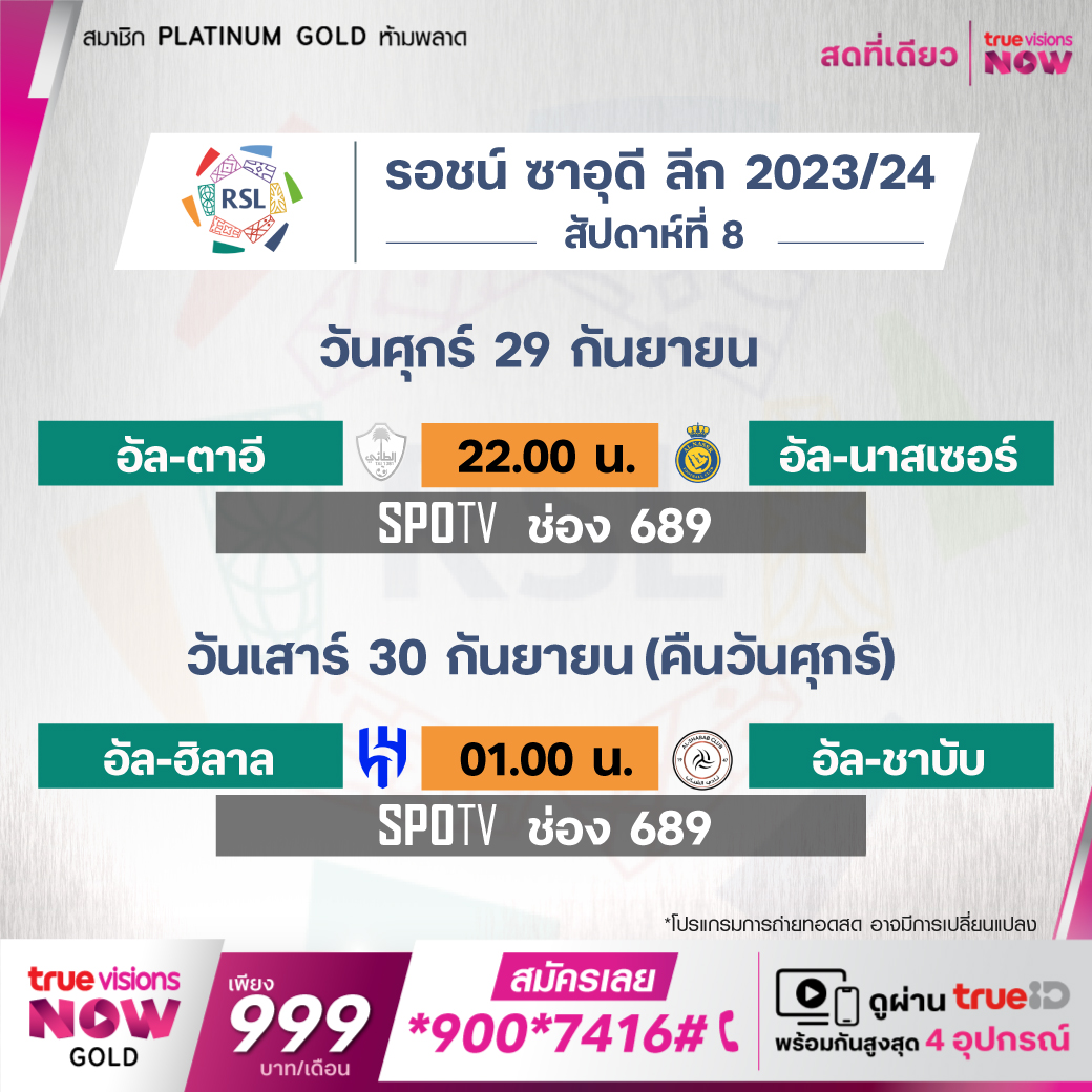 Al-Tai vs Al-Nassr เวลา 22.00-00.00 ทางช่อง SPOTV (689)