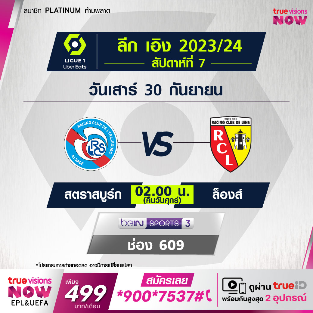 Strasbourg vs Lens เวลา 02.00-04.00 ทางช่อง beIN 3 (609)