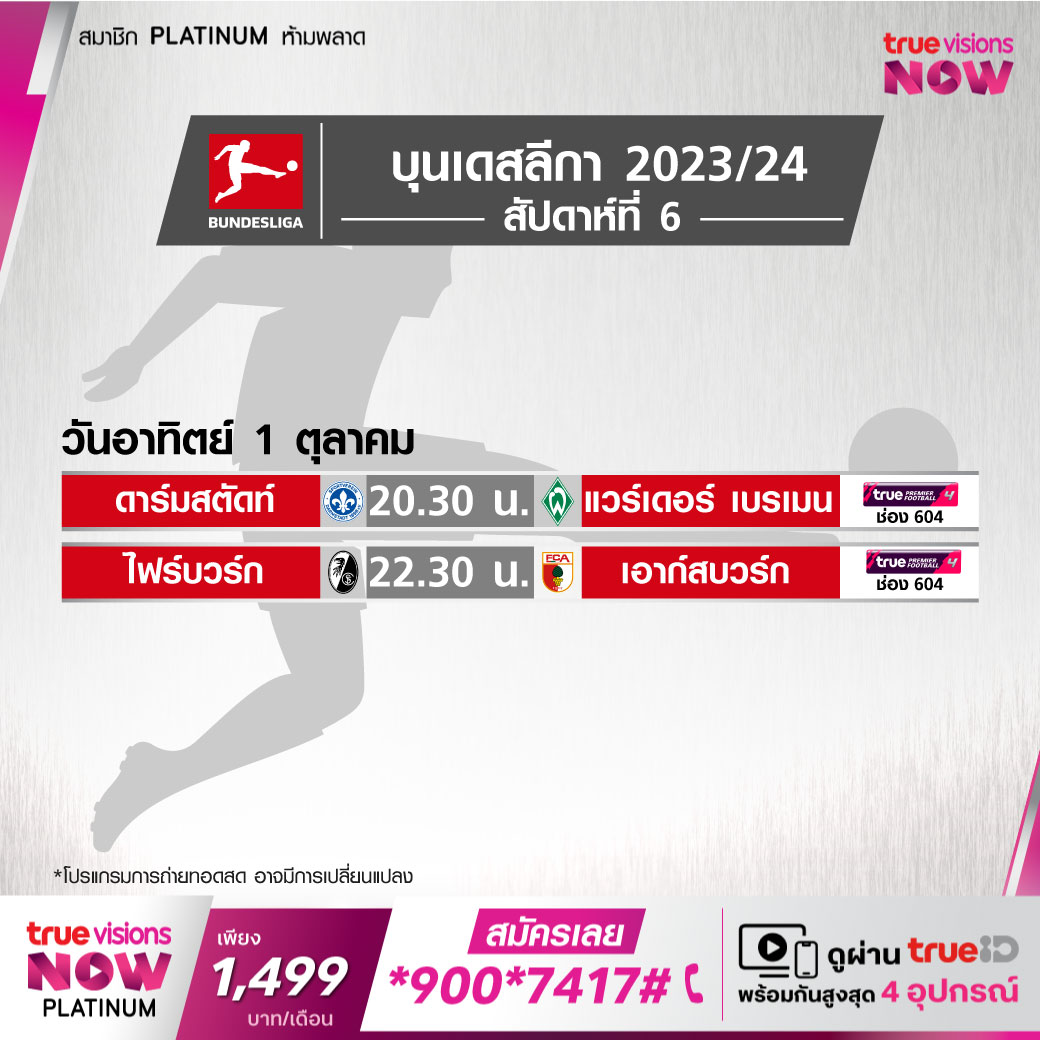 Darmstadt vs Bremen เวลา 20.30-22.30 ทางช่อง TPF 4 (604)