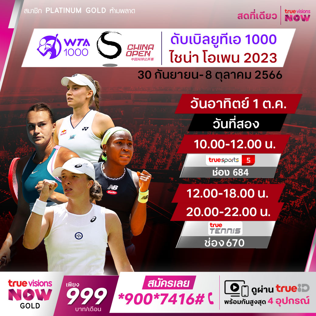 เทนนิสหญิง ดับเบิ้ลยูทีเอ ทัวร์ รายการที่ใหญ่ที่สุดในทวีปเอเชีย ไชน่า โอเพ่น 2023 ความมันส์ระดับ 1000 ซีรี่ส์ ที่ดึงดูดเอามือท็อปๆ ของโลกมาโชว์ผลงานและร่วมลุ้นแชมป์ให้แฟนๆ ได้สัมผัสประสบการณ์ระดับโลก แต้มต่อแต้ม เกมต่อเกม รอบต่อรอบ ทุกชัยชนะ มีความหมายต่อการเป็น