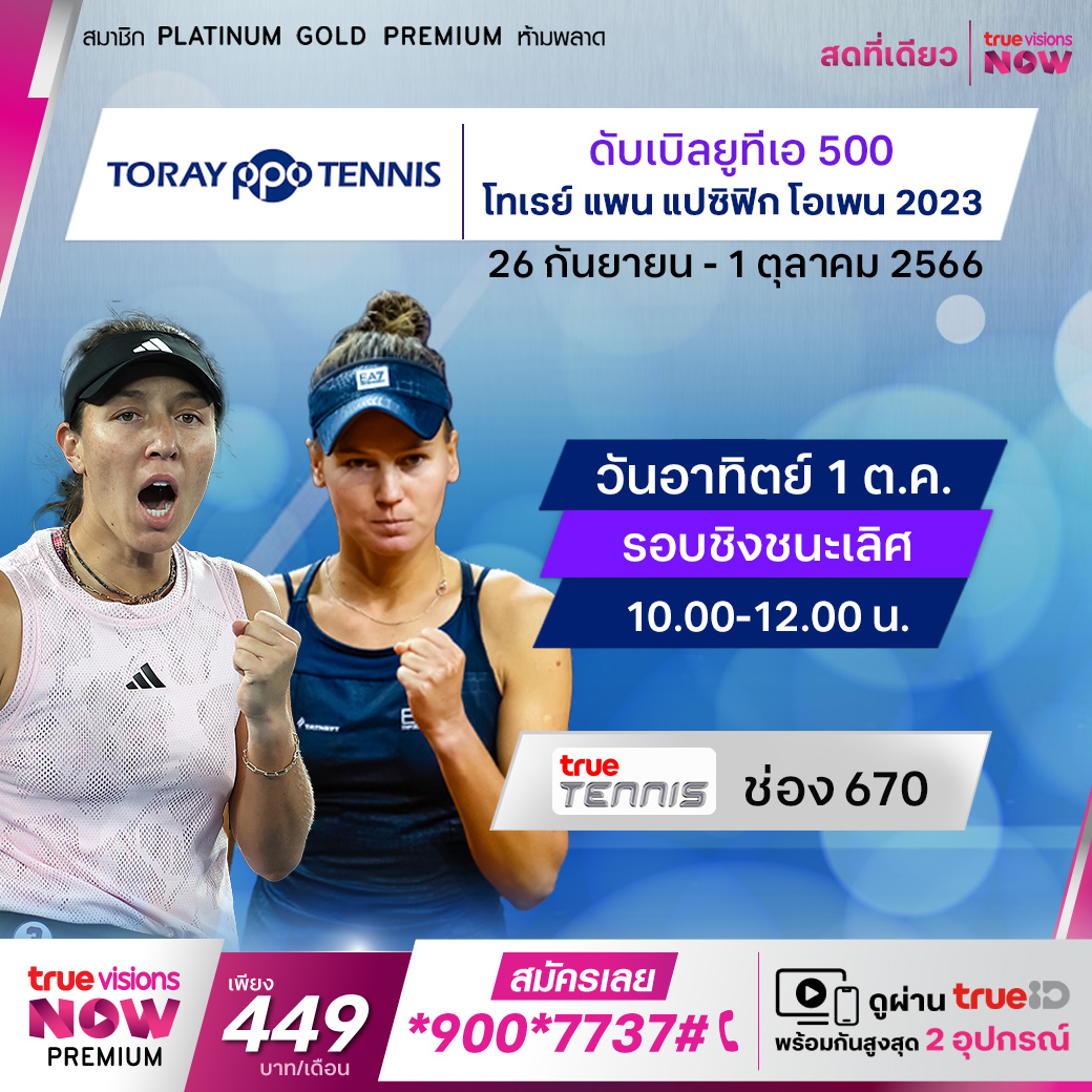 เทนนิส ดับเบิ้ลยูทีเอ ทัวร์ สัปดาห์นี้ติดตามการดวลแร็คเก็ตที่ประเทศญี่ปุ่น กับรายการสุดคลาสสิก โทเรย์ แพน แปซิฟิก โอเพ่น เทนนิส 2023 ในรอบชิงชนะเลิศ สด เอ็กซ์คลูซีฟ จากกรุงโตเกียวครบทุกรอบ ทาง ทรูวิชั่นส์ ที่เดียว