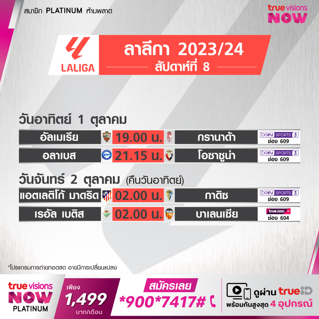 Atletico vs Cadiz เวลา 02.00-04.00 ทางช่อง beIN 3 (609)
