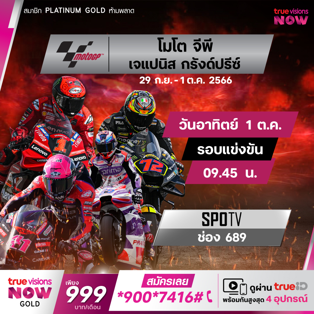ศึกโมโต จีพี สนามที่ 14 รายการ เจแปนิส กรังด์ปรีซ์ จากสนาม โมเตกิ เซอร์กิต ประเทศญี่ปุ่น เชียร์กันสนุกทั้งรุ่น โมโต 3, โมโต 2 และโมโต จีพี ทุกช่วงสำคัญ ทุกเรซ ใครจะเป็นแชมป์ตามติดชิดขอบแทร็ค ชมสด ทาง ทรูวิชั่นส์