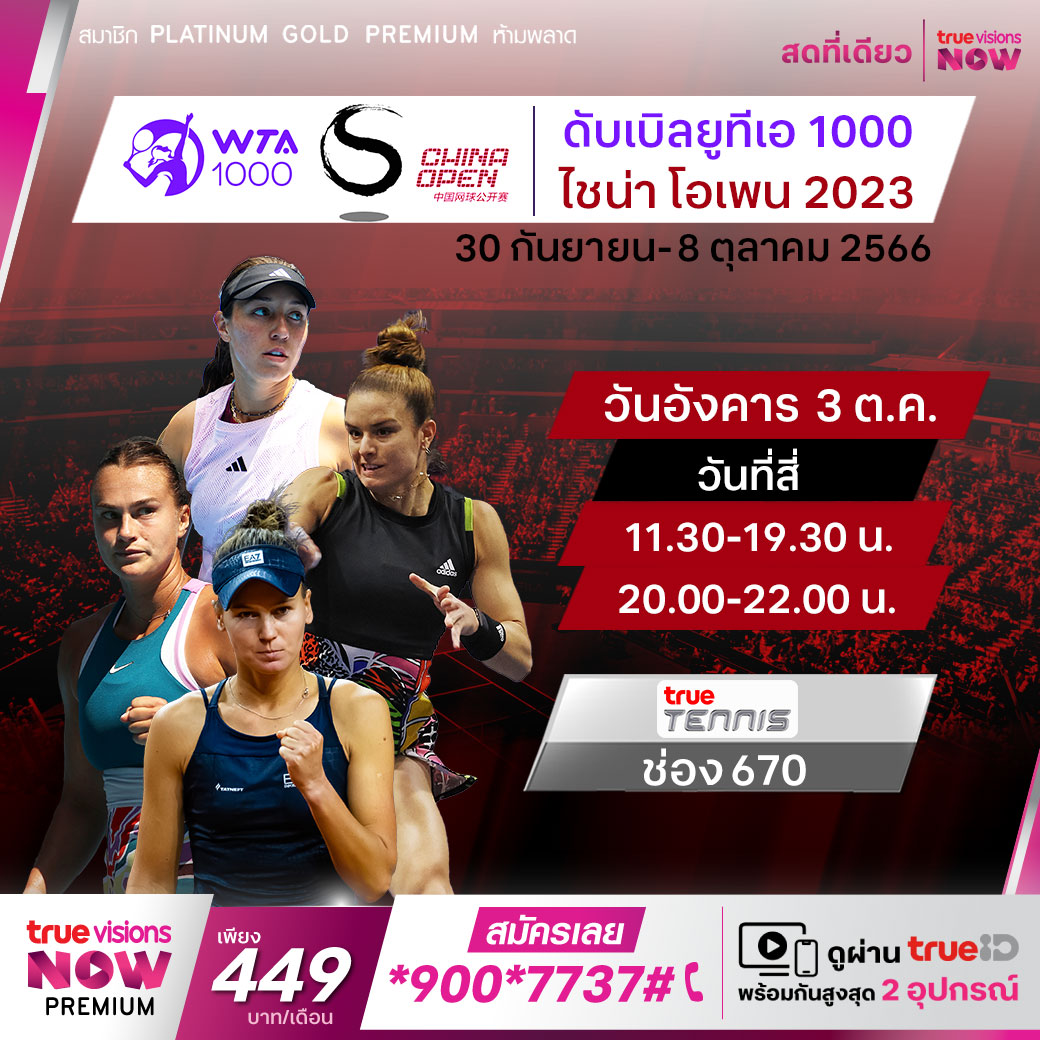 เทนนิสหญิง ดับเบิ้ลยูทีเอ ทัวร์ รายการที่ใหญ่ที่สุดในทวีปเอเชีย ไชน่า โอเพ่น 2023 ความมันส์ระดับ 1000 ซีรี่ส์ ที่ดึงดูดเอามือท็อปๆ ของโลกมาโชว์ผลงานและร่วมลุ้นแชมป์ให้แฟนๆ ได้สัมผัสประสบการณ์ระดับโลก แต้มต่อแต้ม เกมต่อเกม รอบต่อรอบ ทุกชัยชนะ มีความหมายต่อการเป็น