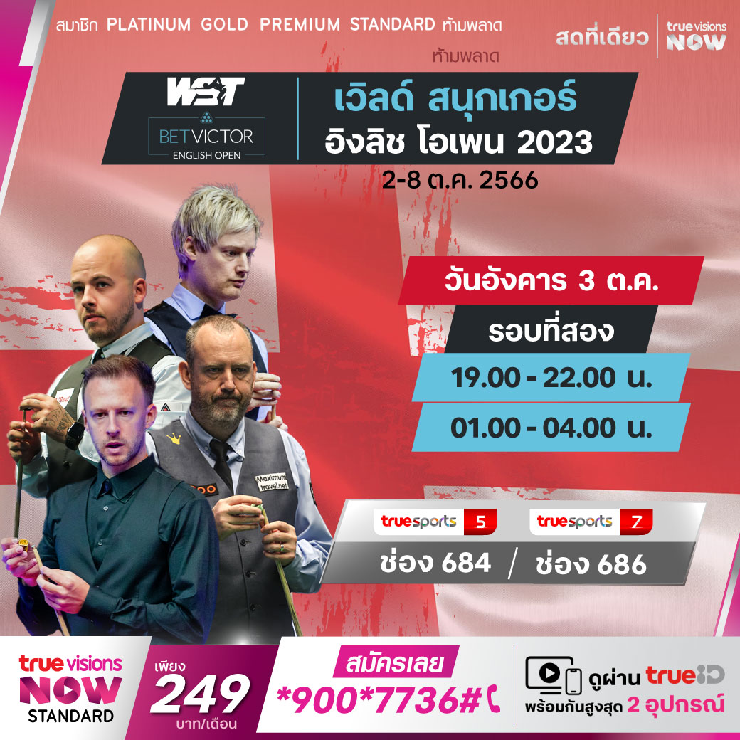 ไม่ต้องพัก ไม่ต้องเสียเวลารอคอย แฟนๆ สนุกเกอร์ ปักหลัก ติดตามลีลาการดวลคิวของบรรดาเทพๆ ของวงการ เปิดศึกความแม่นกันต่อเนื่อง กับรายการเก็บคะแนนสะสมโลก สัปดาห์ที่ 2 ติดต่อกันในประเทศอังกฤษ กับรายการ อิงลิช โอเพ่น 2023 ที่เป็นรายการแรกของ โฮม เนชั่นส์ ซีรีส์ สด เอ็กซ์คลูซีฟ จากเบรนท์วู้ด ประเทศอังกฤษ ชมสด ทาง ทรูวิชั่นส์ ที่เดียว