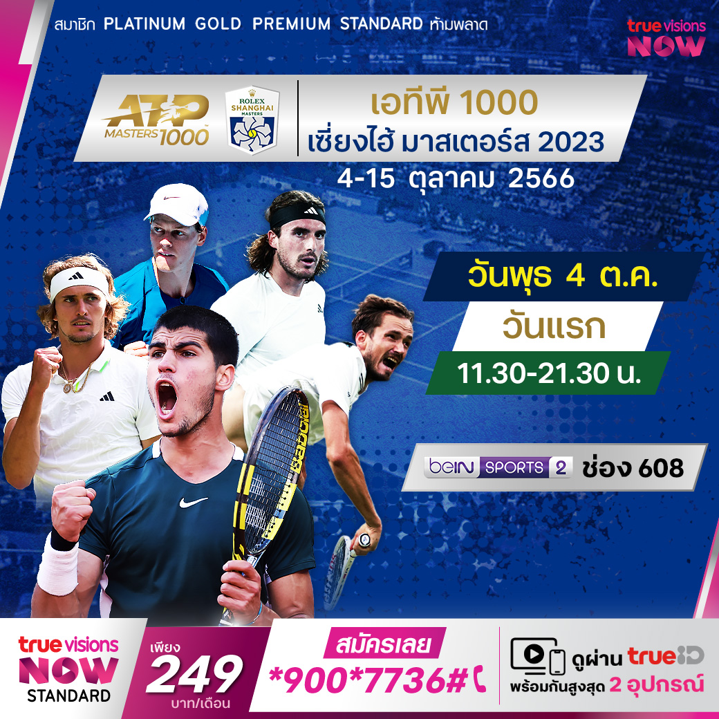 แฟนๆ กีฬาเทนนิสพลาดไม่ได้ เมื่อนักหวดซูเปอร์สตาร์ระดับโลก ตบเท้าพาเหรดกันมาร่วมแข่งขันกันอย่างคับคั่งในศึก เอทีพี มาสเตอร์ส 1000 เซี่ยงไฮ้ มาสเตอร์ส รายการที่ยิ่งใหญ่และเคยได้รับการโหวตให้เป็นอันดับ 1 ของทัวร์ถึง 5 ครั้ง ปีนี้เจ้าภาพจัดใหญ่ให้เงินรางวัลรวมมหาศาล 10 ล้านเหรียญสหรัฐฯ ชมสดจุใจครบทุกรอบ ร่วมลุ้นกันว่าใครจะเป็นแชมป์ในปีนี้ ชมสด ทาง ทรูวิชั่นส์ ที่เดียว