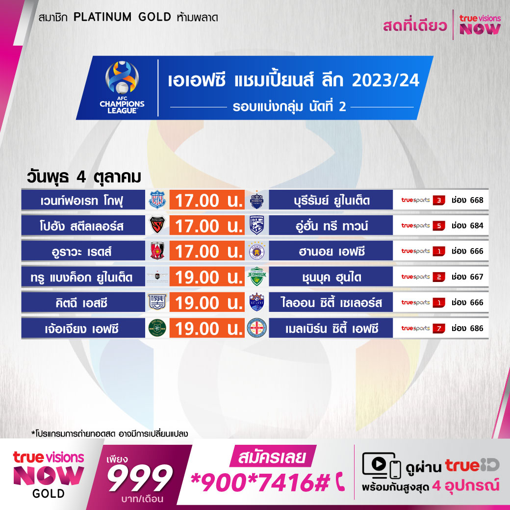 True Bangkok United vs Jeonbuk เวลา 19.00-21.00 ทางช่อง TS 2 (667)