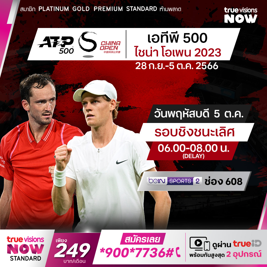 เทนนิส เอทีพี เวิลด์ ทัวร์ ที่มหานครปักกิ่ง เมืองหลวงของประเทศจีน ในรายการระดับ 500 ซีรี่ส์ ไชน่า โอเพ่น 2023 ที่สนาม ปักกิ่ง โอลิมปิก กรีน เทนนิส เซนเตอร์ ในรอบชิงชนะเลิศ ใครจะคว้าแชมป์รายการนี้ไปครอง ชมสด ทาง ทรูวิชั่นส์ ที่เดียวรอบชิงชนะเลิศ เวลา 06.00 - 08.00 (Delay) ทางช่อง beIN 2 (608)