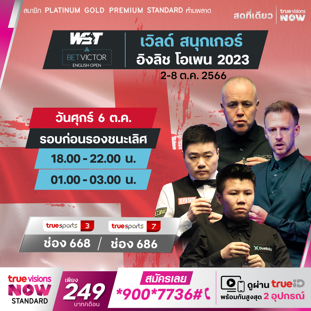 ศึกเวิลด์ สนุกเกอร์ รายการเก็บคะแนนสะสมโลก สัปดาห์ที่ 2 ติดต่อกันในประเทศอังกฤษ กับรายการ อิงลิช โอเพ่น 2023 ที่เป็นรายการแรกของ โฮม เนชั่นส์ ซีรีส์ สด เอ็กซ์คลูซีฟ จากเบรนท์วู้ด ประเทศอังกฤษ ชมสด ทาง ทรูวิชั่นส์ ที่เดียวรอบก่อนรองชนะเลิศ เวลา 18.00 - 22.00 / 01.00 - 03.00 ทางช่อง TS 3 (668) / TS 7 (686)