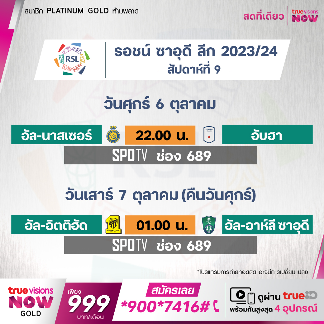 Al-Ittihad vs Al-Ahli Saudi เวลา 01.00-03.00 ทางช่อง SPOTV (689)