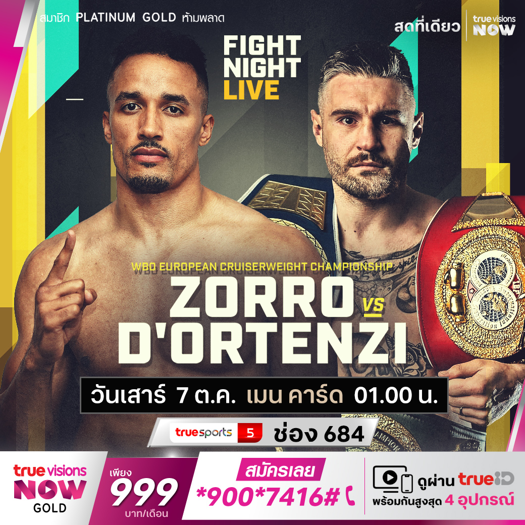 มวยมันส์ระดับโลกไฟต์ล่าสุดจาก ควีนส์เบอร์รี่ โปรโมชั่นส์ สัปดาห์นี้ จัดเต็มเพื่อแฟนๆ กีฬาหมัดมวย คู่เอก ชิงแชมป์รุ่น ครุยเซอร์เวต ดับเบิ้ลยูบีโอ อินเตอร์เนชั่นแนล ระหว่าง เอลลิส ซอร์โร่ นักชกมากฝีมือชาวอังกฤษ กับผู้ท้าชิงจากอิตาลี ลูก้า ดิ ออร์เทนซี่ ร่วมด้วยไฟต์ชิงแชมป์ว่างคอมมอนเว้ลธ์ ของรุ่นเฟเธอร์เวต ระหว่าง อับดุลลาห์ ปะทะ ลีช ชมสด ที่เดียว ทาง ทรูวิชั่นส์