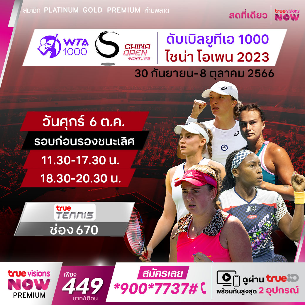 เทนนิสหญิง ดับเบิ้ลยูทีเอ ทัวร์ ไชน่า โอเพ่น 2023 ความมันส์ระดับ 1000 ซีรี่ส์ เชียร์มือท็อปของโลกกันแบบแต้มต่อแต้ม เกมต่อเกม รอบต่อรอบ ทุกชัยชนะ มีความหมายต่อการเป็นผู้ชนะเลิศรายการนี้ สด เอ็กซ์คลูซีฟ ชมสด ทาง ทรูวิชั่นส์ ที่เดียว