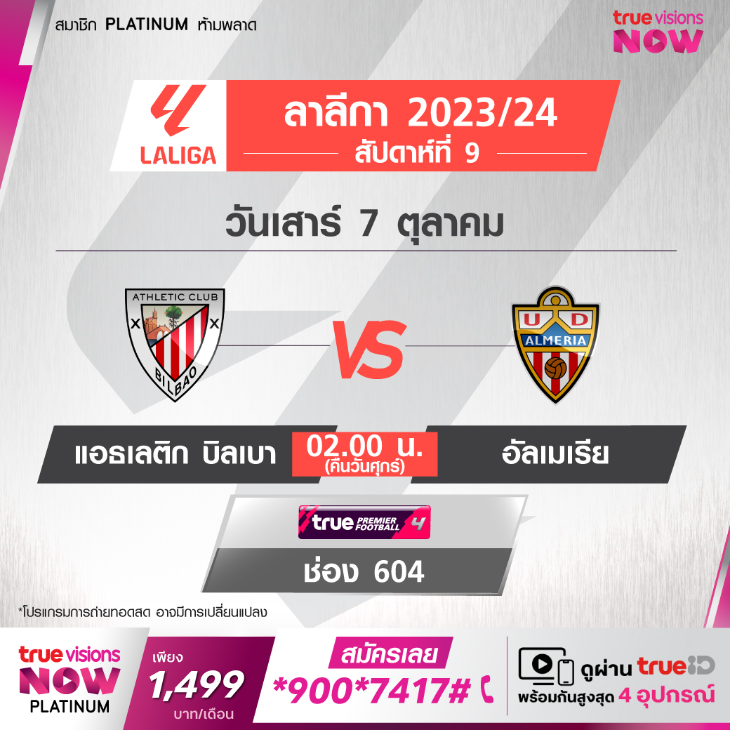 Athletic vs Almeria เวลา 02.00-04.00 ทางช่อง TPF 4 (604)
