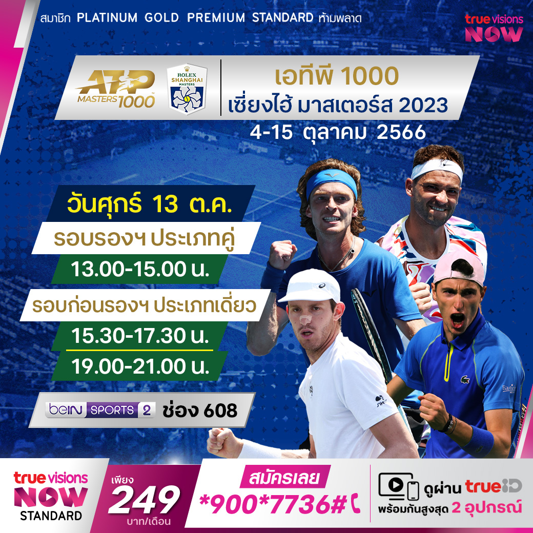 เทนนิส เอทีพี มาสเตอร์ส 1000 เซี่ยงไฮ้ มาสเตอร์ส รายการที่ยิ่งใหญ่และเคยได้รับการโหวตให้เป็นอันดับ 1 ของทัวร์ถึง 5 ครั้ง ปีนี้เจ้าภาพจัดใหญ่ให้เงินรางวัลรวมมหาศาล 10 ล้านเหรียญสหรัฐฯ มาถึงในรอบก่อนรองชนะเลิศ ร่วมลุ้นกันว่าใครจะเป็นแชมป์ในปีนี้ ชมสด ทาง ทรูวิชั่นส์ ที่เดียว