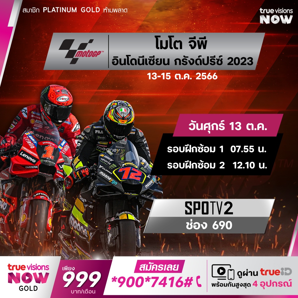 วันนี้มีอะไรดูที่ ทรูวิชั่นส์ ประจำวันศุกร์ที่ 13 ตุลาคม 66 ไฮไลท์อยู่ที่การแข่งขัน โมโต จีพี รายการ อินโดนีเซียน กรังด์ปรีซ์ นอกจากนี้ยังมีศึกเทนนิส เอทีพี ทัวร์ รายการ เซี่ยงไฮ้ มาสเตอร์ส และ ดับเบิ้ลยูทีเอ ทัวร์ สองรายการอย่าง เจิ้งโจว โอเพ่น และ โคเรีย โอเพ่น ขณะที่กอล์ฟยังมีให้ได้ติดตามกันเพียบทั้ง พีจีเอ ทัวร์ รายการ ไชรเนอร์ ชิลเดรนส์ โอเพ่น, ลิฟ กอล์ฟ 2023 ที่ เจดดาห์, เอเชียน ทัวร์ รายการ มาเก๊า โอเพ่น, แอลพีจีเอ ทัวร์ รายการ บิวอิก แอลพีจีเอ เซี่ยงไฮ้ 2023, แบดมินตัน บีดับเบิ้ลยูเอฟ รายการ อาร์คติก โอเพ่น และ เวิลด์ สนุกเกอร์ รายการใหญ่อย่าง อู่ฮั่น โอเพ่น งานนี้ ทรูวิชั่นส์ จัดเต็มให้ชมกันถึงบ้าน