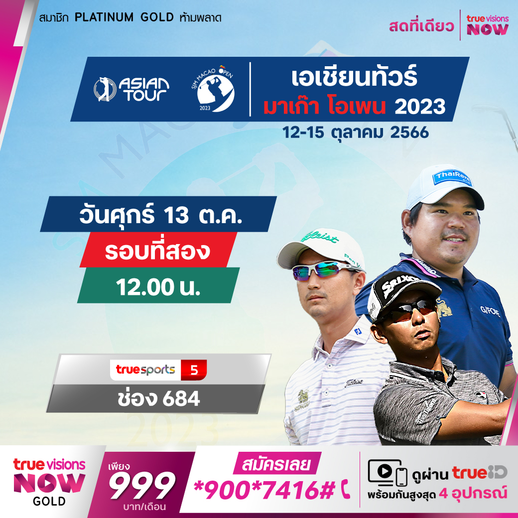 กอล์ฟ เอเชี่ยน ทัวร์ รายการ มาเก๊า โอเพ่น 2023 จากสนาม มาเก๊า กอล์ฟ แอนด์ คันทรี่ คลับ ชิงเงินรางวัลรวมหนึ่งล้านเหรียญสหรัฐฯ ส่งใจเชียร์โปรไทยให้ทำผลงานยอดเยี่ยม เพื่อลุ้นถึงตำแหน่งแชมป์สัปดาห์นี้ สดครบทุกรอบ ชมสด ทาง ทรูวิชั่นส์ ที่เดียว