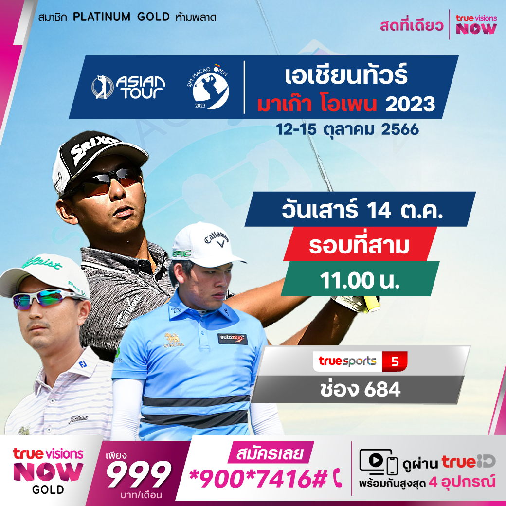 กอล์ฟ เอเชี่ยน ทัวร์ รายการ มาเก๊า โอเพ่น 2023 จากสนาม มาเก๊า กอล์ฟ แอนด์ คันทรี่ คลับ ชิงเงินรางวัลรวมหนึ่งล้านเหรียญสหรัฐฯ ส่งใจเชียร์โปรไทยให้ทำผลงานยอดเยี่ยม เพื่อลุ้นถึงตำแหน่งแชมป์สัปดาห์นี้ สดครบทุกรอบ ชมสด ทาง ทรูวิชั่นส์ ที่เดียว