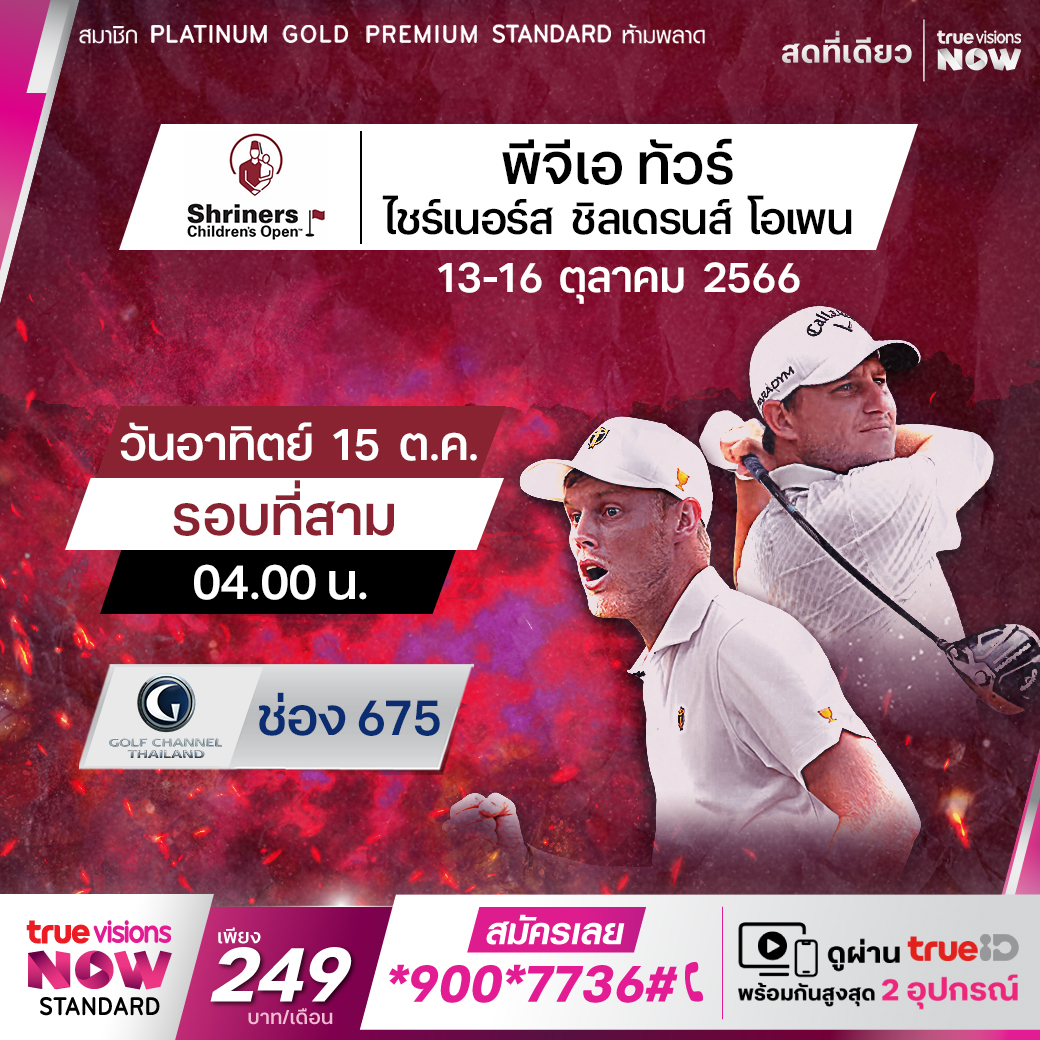 กอล์ฟ พีจีเอ ทัวร์ รายการ ไชรเนอร์ส ชิลเดรนส์ โอเพ่น 2023 ที่สนาม ทีพีซี ซัมเมอร์ลิน ลาสเวกัส รัฐเนวาด้า สหรัฐอเมริกา ชิงเงินรางวัล รวม 8.4 ล้านเหรียญสหรัฐฯ ชมและเชียร์โปรดังๆ ของโลก สู้กันหลุมต่อหลุม รอบต่อรอบ เพื่้อตำแหน่งแชมป์ ชมสด ทาง ทรูวิชั่นส์ ที่เดียว
