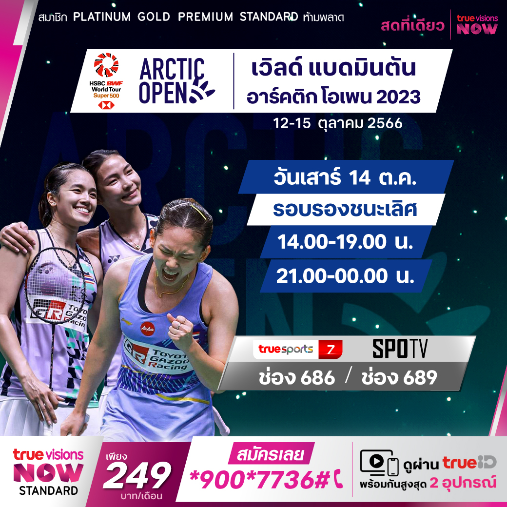 แบดมันตันเก็บคะแนนสะสมโลก บีดับเบิ้ลยูเอฟ รายการ อาร์คติก โอเพ่น 2023 ทัวร์นาเม้นต์ระดับ เวิลด์ ทัวร์ 500 ซีรี่ส์จากประเทศฟินแลนด์ ร่วมเชียร์ ส่งใจเชียร์ “หมิว” พรปวีณ์ ช่อชูวงศ์ และ "กิ๊ฟ"จงกลพรรณ กิติธรากุล/"วิว"รวินดา ประจงใจ ชมสดจุใจ ชมสด ทางทรูวิชั่นส์ ที่เดียว