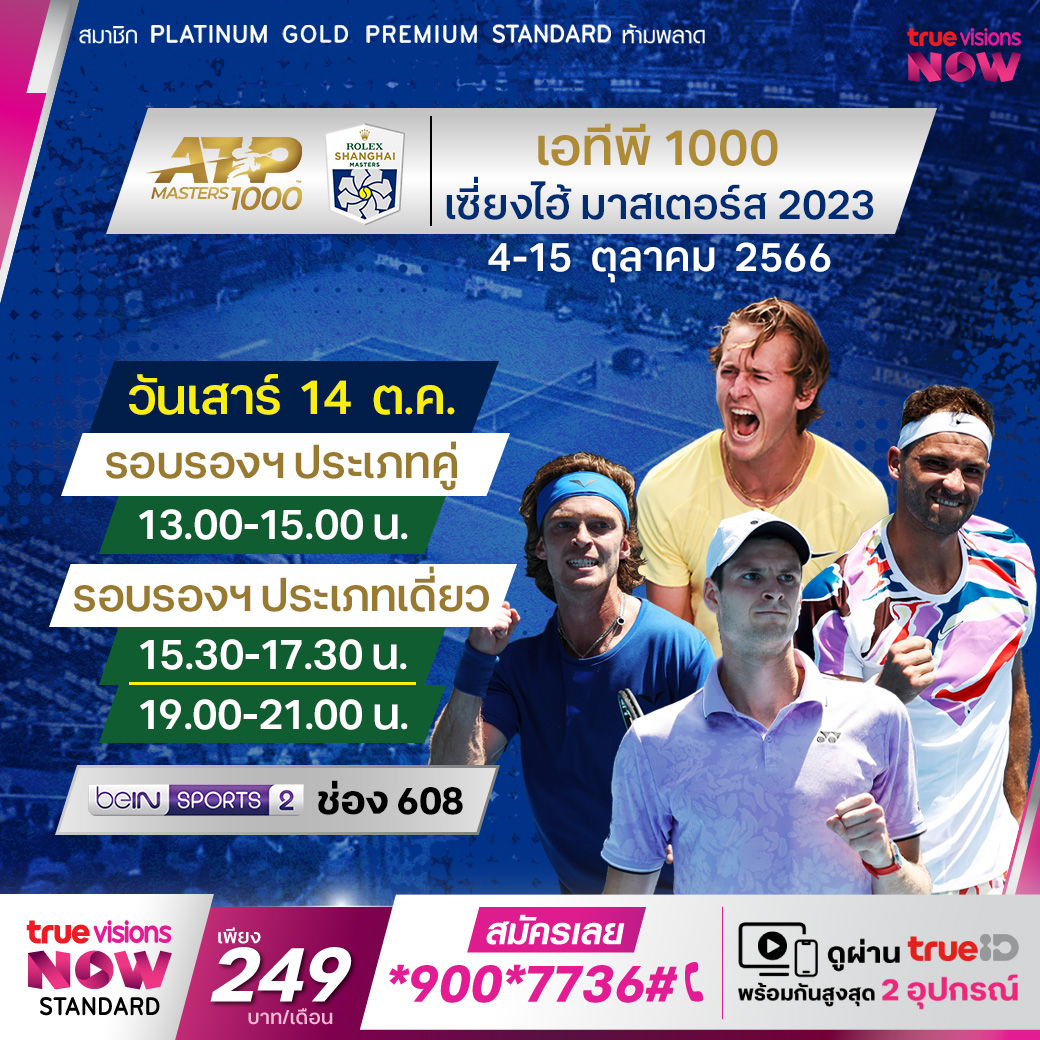 เทนนิส เอทีพี มาสเตอร์ส 1000 เซี่ยงไฮ้ มาสเตอร์ส รายการที่ยิ่งใหญ่และเคยได้รับการโหวตให้เป็นอันดับ 1 ของทัวร์ถึง 5 ครั้ง ปีนี้เจ้าภาพจัดใหญ่ให้เงินรางวัลรวมมหาศาล 10 ล้านเหรียญสหรัฐฯ มาถึงในรอบรองชนะเลิศ ร่วมลุ้นกันว่าใครจะเป็นแชมป์ในปีนี้ ชมสด ทาง ทรูวิชั่นส์ ที่เดียว