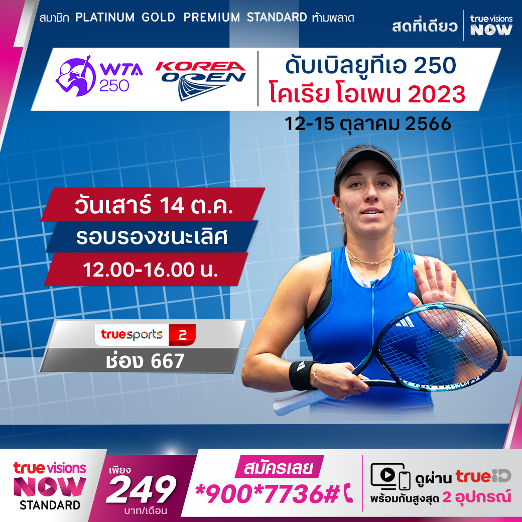 เทนนิสหญิง ดับเบิ้ลยูทีเอ ทัวร์ อีกหนึ่งในรายการเอเชีย สัปดาห์นี้ไปกันที่ เกาหลีใต้ กับ ดับเบิลยูทีเอ ทัวร์ 2580 ซีรีส์ โคเรีย โอเพ่น 2023 ดาวดังของทัวร์ตบเท้าไปสร้างสีสันและลุ้นแชมป์กันอย่างคึกคัก ร่วมลุ้นกันว่าใครจะเป็นแชมป์ปีนี้ ชมสด ทางทรูวิชั่นส์ ที่เดียวรอบรองชนะเลิศ เวลา 12.00 - 16.00 ทางช่อง TS 2 (667)