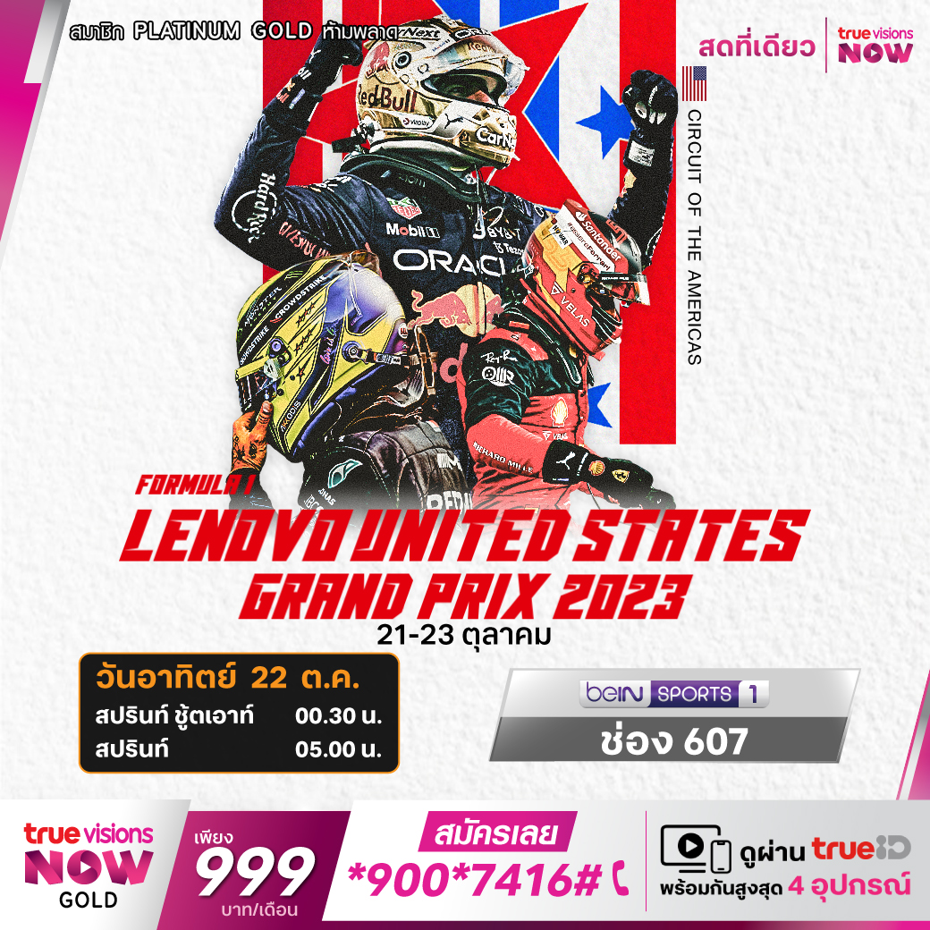 ฟอร์มูล่า วัน เวิลด์ แชมเปี้ยนชิพ ฤดูกาล 2023 การขับเคี่ยวของทีมระดับโลกยังไม่จบ แม้ตำแหน่งแชมป์โลกจะถูกตัดสินไปแล้ว แต่ทุกสนามที่เหลือไม่มีใครยอมใคร สัปดาห์นี้กับรายการ ยูเอส กรังด์ปรีซ์ ดุเดือดแน่นอน จาก เซอร์กิต ออฟ ดิ อเมริกา เมืองออสติน รัฐเท็กซัส สดทุกช่วง ชมสด ทางทรูวิชั่นส์ ที่เดียว