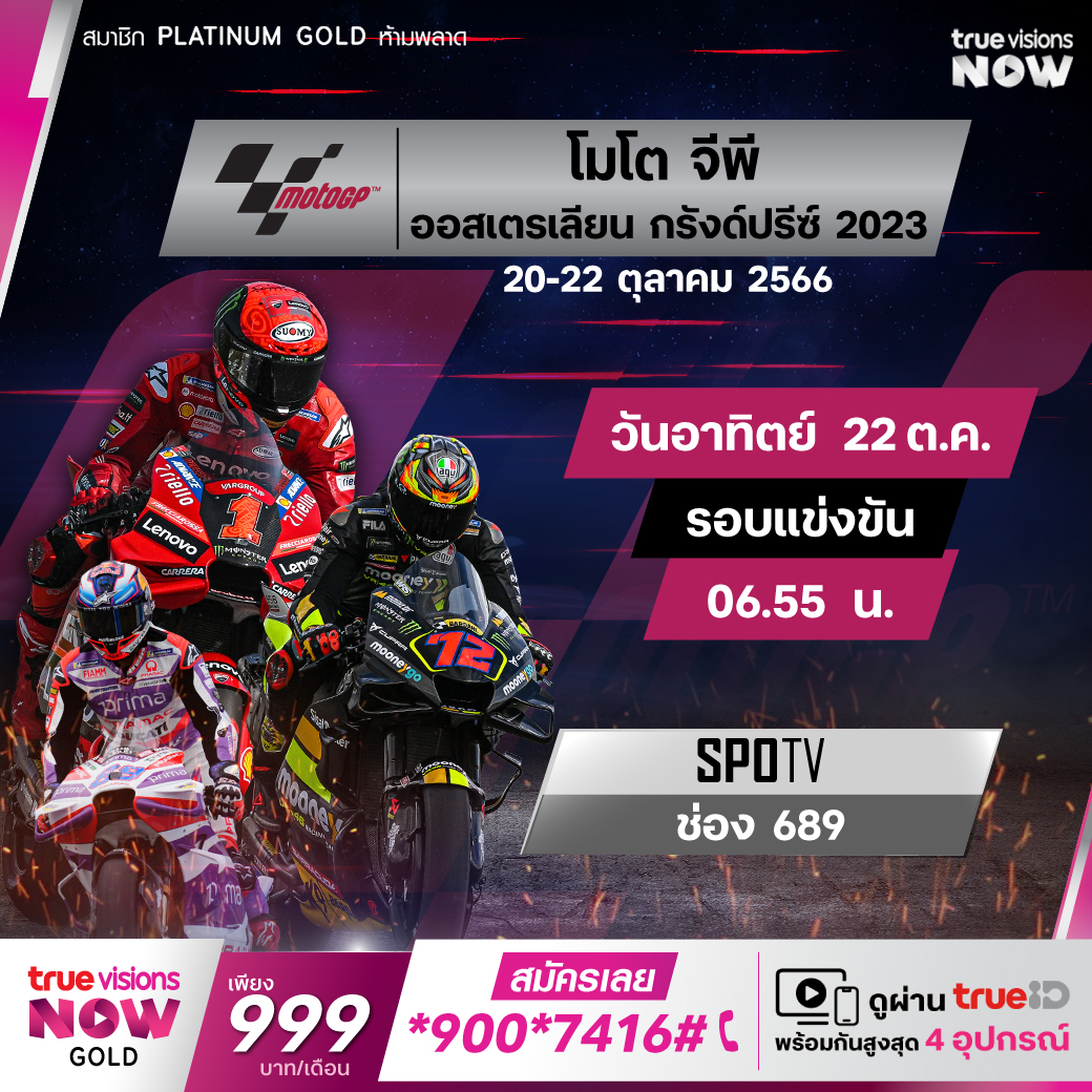 โมโต จีพี เวิลด์ แชมเปี้ยนชิพ เดินทางมาถึงสนามที่ 10 ที่เป็นครึ่งทางของฤดูกาล 2023 กับรายการ ออสเตรเลียน กรังด์ปรีซ์ ที่สนาม ฟิลลิป ไอส์แลนด์ กรังด์ปรีซ์ เซอร์กิต ชมสดจุใจครบทุกช่วง ในทุกรุ่น โมโต 3, โมโต 2 และโมโต จีพี