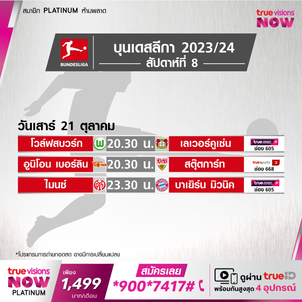 Mainz vs Bayern เวลา 23.30-01.30 ทางช่อง TPF 5 (605)