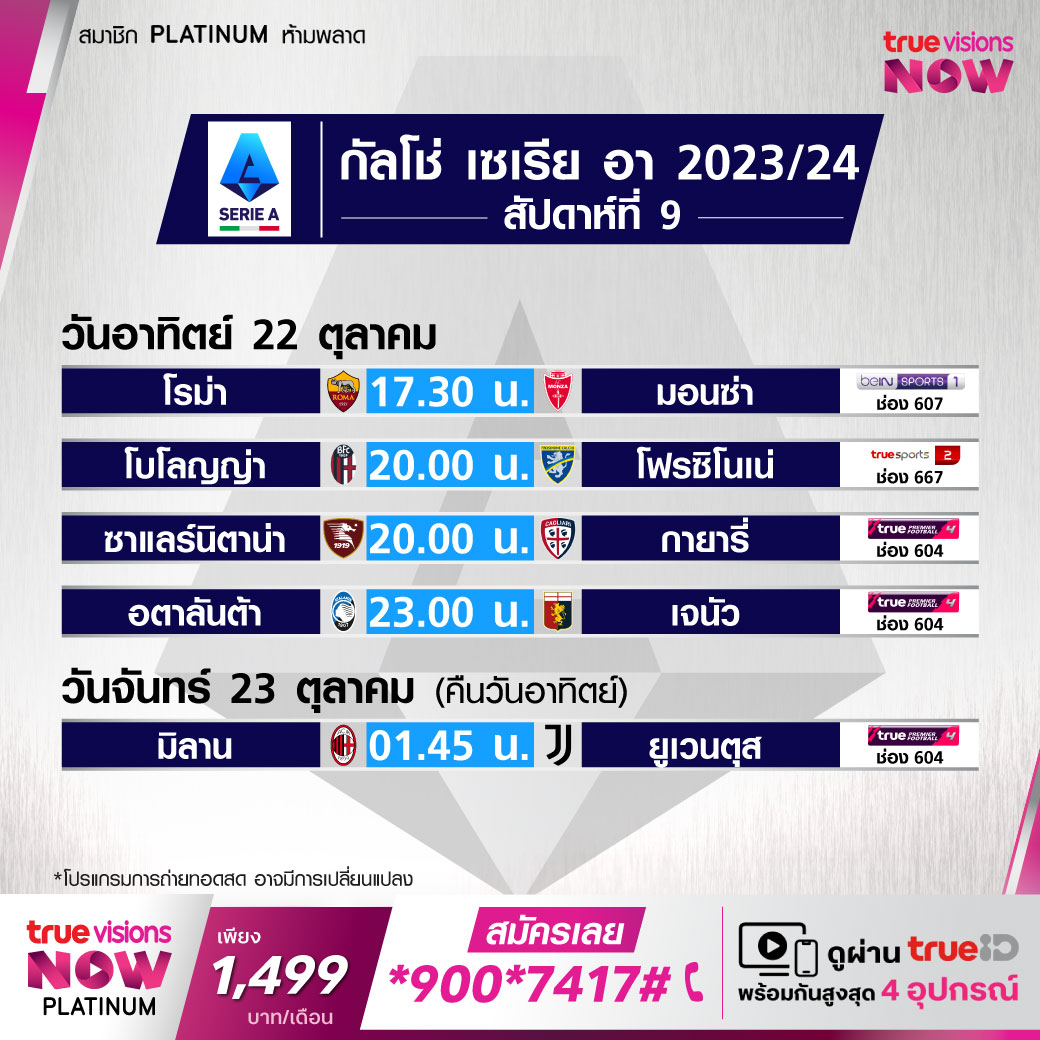 Atalanta vs Genoa เวลา 23.00-01.00 ทางช่องTPF 4 (604)