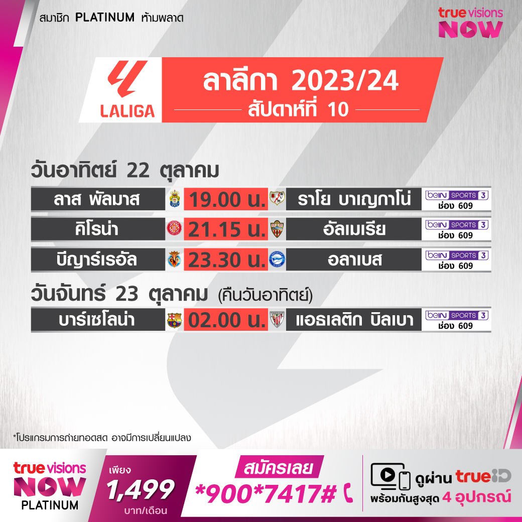 Las Palmas vs Rayo เวลา 19.00-21.00 ทางช่อง beIN 3 (609)