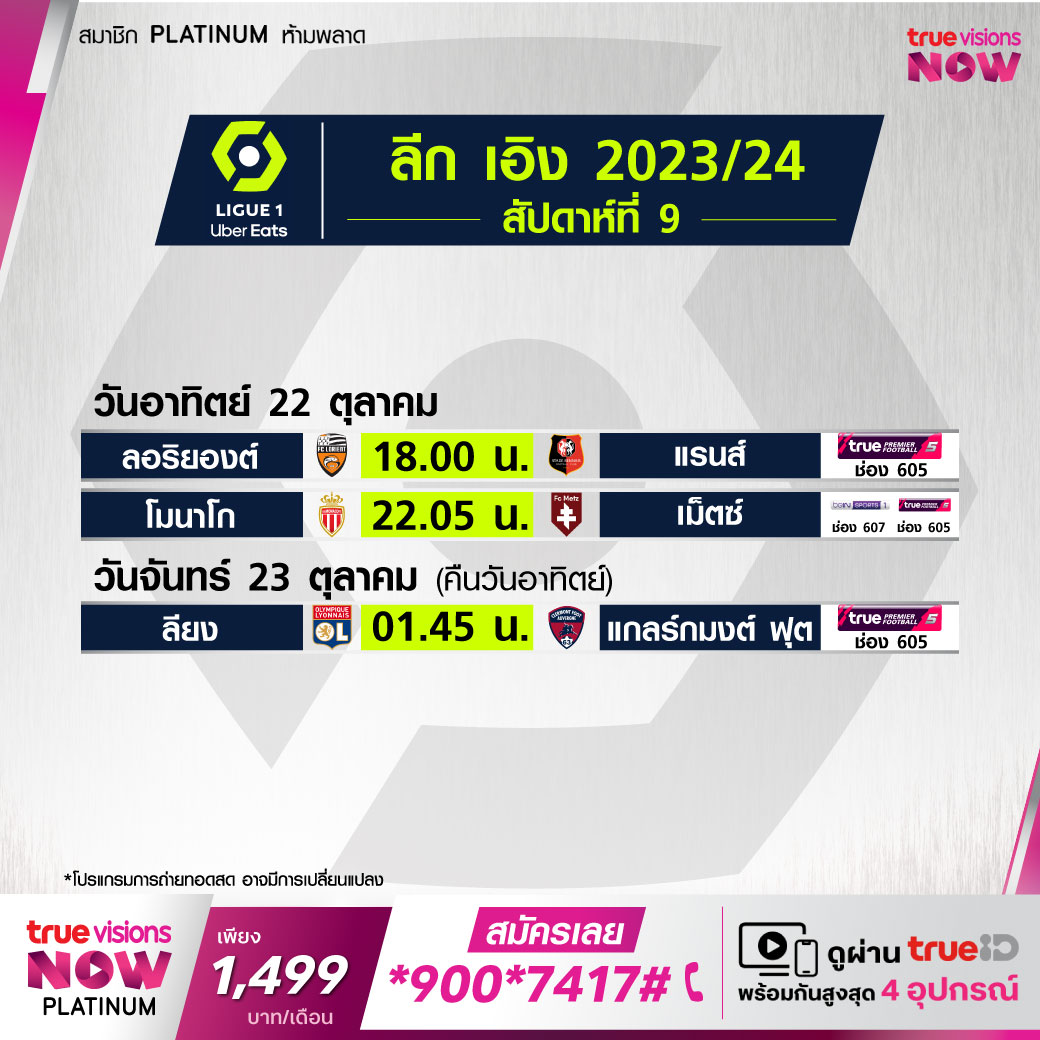 Lyon vs Clermont เวลา 01.45-03.45 ทางช่อง TPF 5 (605)