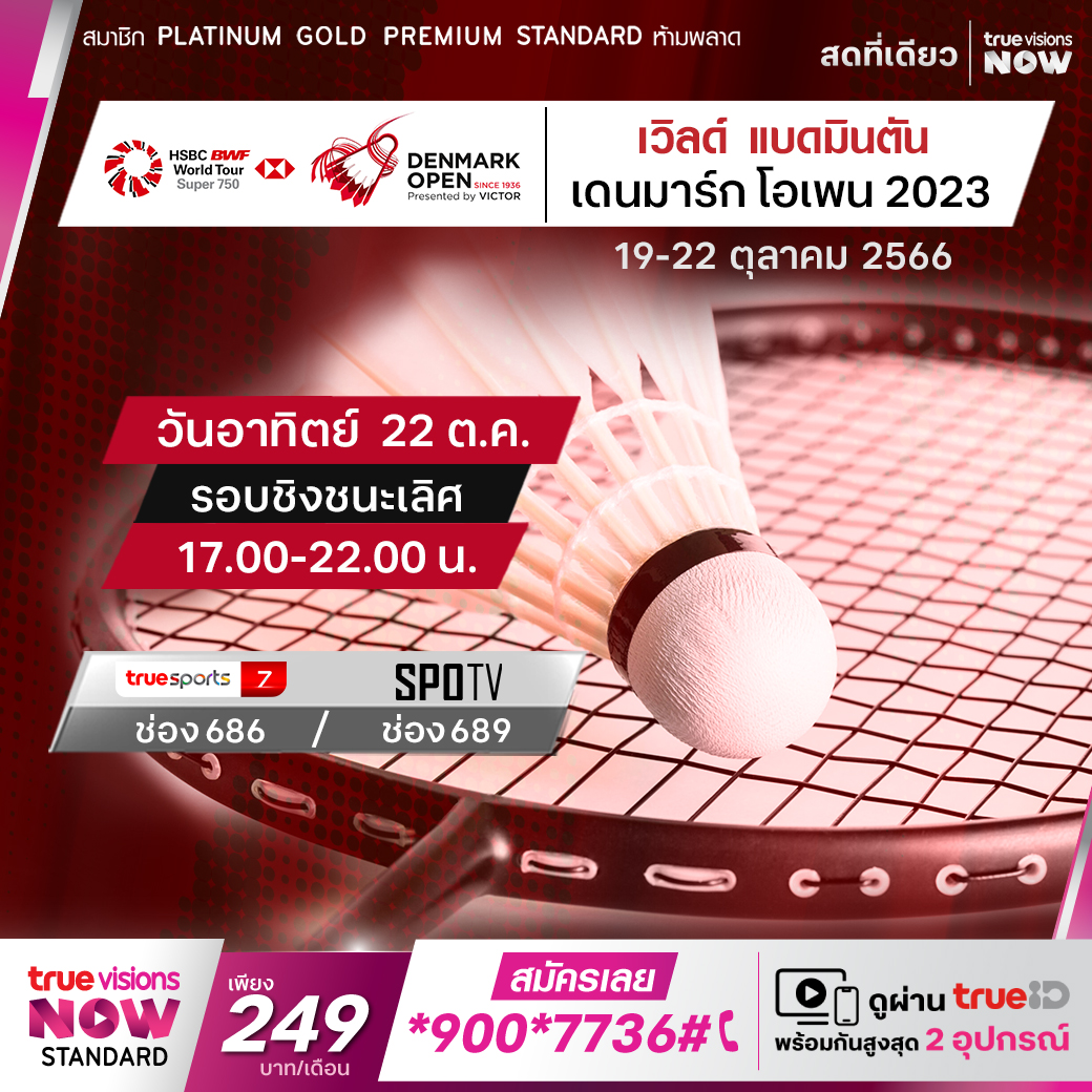 แบดมินตัน เก็บคะแนนสะสมโลก ฤดูกาล 2023 รายการใหญ่ ระดับ เวิลด์ ทัวร์ 750 ซีรี่ส์ เดนมาร์ก โอเพ่น 2023 ในรอบชิงชนะเลิศ ร่วมเชียร์ทีมแบดมินตันไทย คว้าชัยเหนือนักกีฬาต่างชาติ จุใจครบทุกรอบ ชมสด ทางทรูวิชั่นส์ ที่เดียว