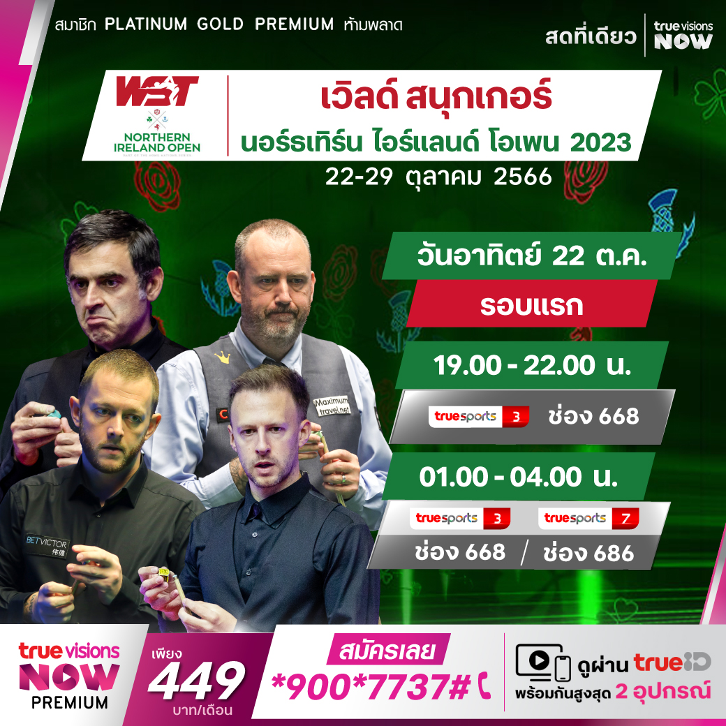 ศึกสอยคิวระดับโลก เวิลด์ สนุกเกอร์ ฤดูกาล 2023/24 สัปดาห์นี้ดวลคิวที่สหราชอาณาจักร กับรายการสำคัญ นอร์ธเทิร์น ไอร์แลนด์ โอเพ่น 2023 รายการที่ 2 ของ โฮม เนชั่นส์ ซีรี่ส์ เชียร์ซูเปอร์สตาร์ของโลกสู้กันเพื่อครองแชมป์และชูถ้วย อเล็กซ์ ฮิกกินส์ โทรฟี่ สดที่เดียว ชมสด ทางทรูวิชั่นส์ ที่เดียว