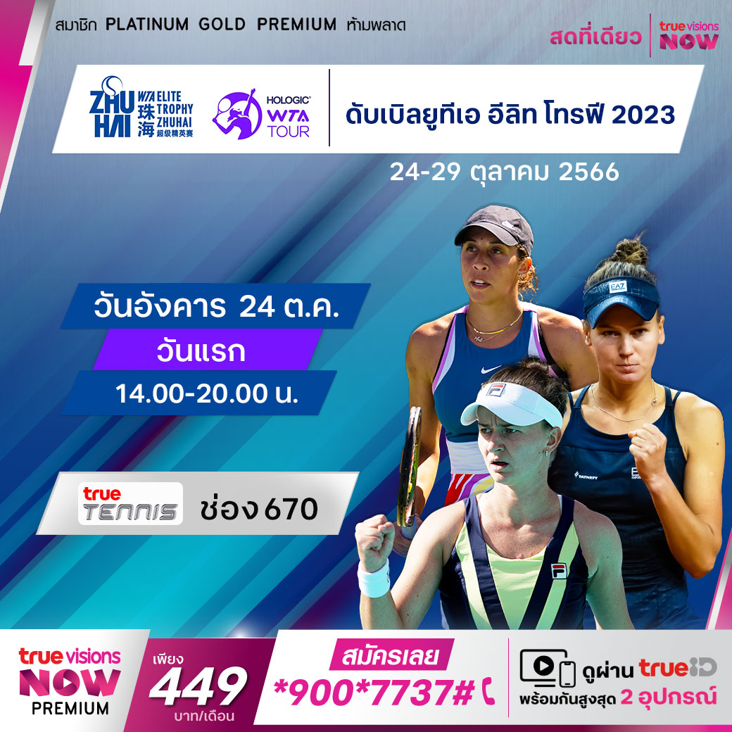 แฟนๆ พลาดไม่ได้ กับเทนนิสหญิงรายการสุดยิ่งใหญ่ที่จะแข่งปิดท้ายฤดูกาล 2023 กับรายการ ดับเบิ้ลยูทีเอ อีลิท โทรฟี่ ที่กลับมาแข่งอีกครั้ง พร้อมด้วยสุดยอดฝีมือนักเทนนิสหญิง 12 คน มาดวลกัน เพื่อพิสูจน์กันว่าใครจะเป็นแชมป์ในปีนี้ สดจากซูไห่ ประเทศจีน ชมสด จุใจ ครบทุกรอบ