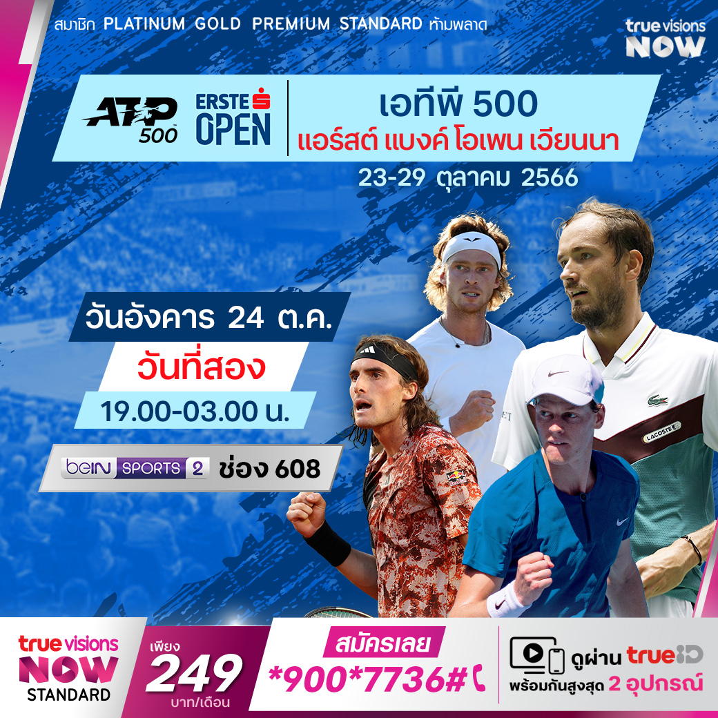 เทนนิส เอทีพี ทัวร์ 500 ซีรี่ส์ แอร์ส แบงค์ โอเพ่น ที่กรุงเวียนนา ประเทศออสเตรีย มือระดับท็อปของโลกที่ต่างเป็นขวัญใจของแฟนๆ พร้อมใจมาร่วมดวลแร็คเก็ต เพื่อเป้าหมายเดียวกันคือตำแหน่งแชมป์รายการนี้ ชมสด จุใจ ทาง ทรูวิชั่นส์