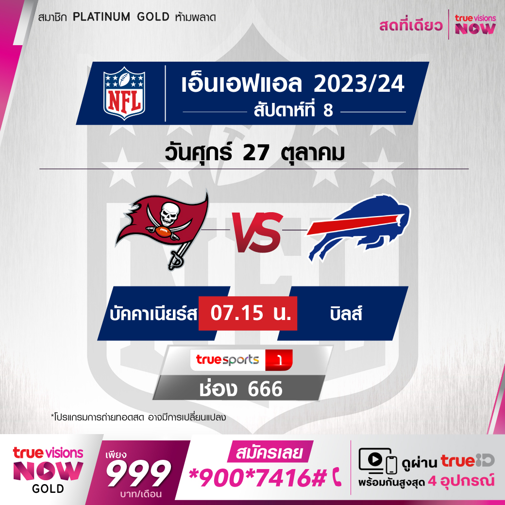 วันศุกร์ 27 ต.ค. Buccaneers Vs Bills เวลา 07.15 ทางช่อง TS 1 (666)