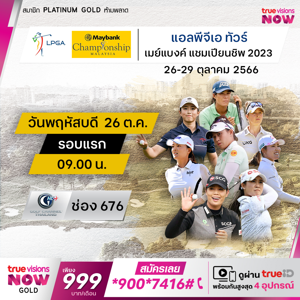 ร่วมเชียร์กันให้สุดใจ กับรายการสำคัญของกอล์ฟอาชีพหญิงระดับโลก แอลพีจีเอ ทัวร์ ฤดูกาล 2023 ที่ยังปักหลักในทวีปเอเชีย กับศึก เมย์แบงค์ แชมเปี้ยนชิพ จากสนาม กัวลาลัมเปอร์ กอล์ฟ แอนด์ คันทรี่ คลับ กรุงกัวลาลัมเปอร์ ประเทศมาเลเซีย ชิงเงินรางวัล 3,000,000 เหรียญสหรัฐฯ ลุ้นกันว่าใครจะคว้าแชมป์ในปีนี้ สดครบทุกรอบ ที่ ทรูวิชั่นส์