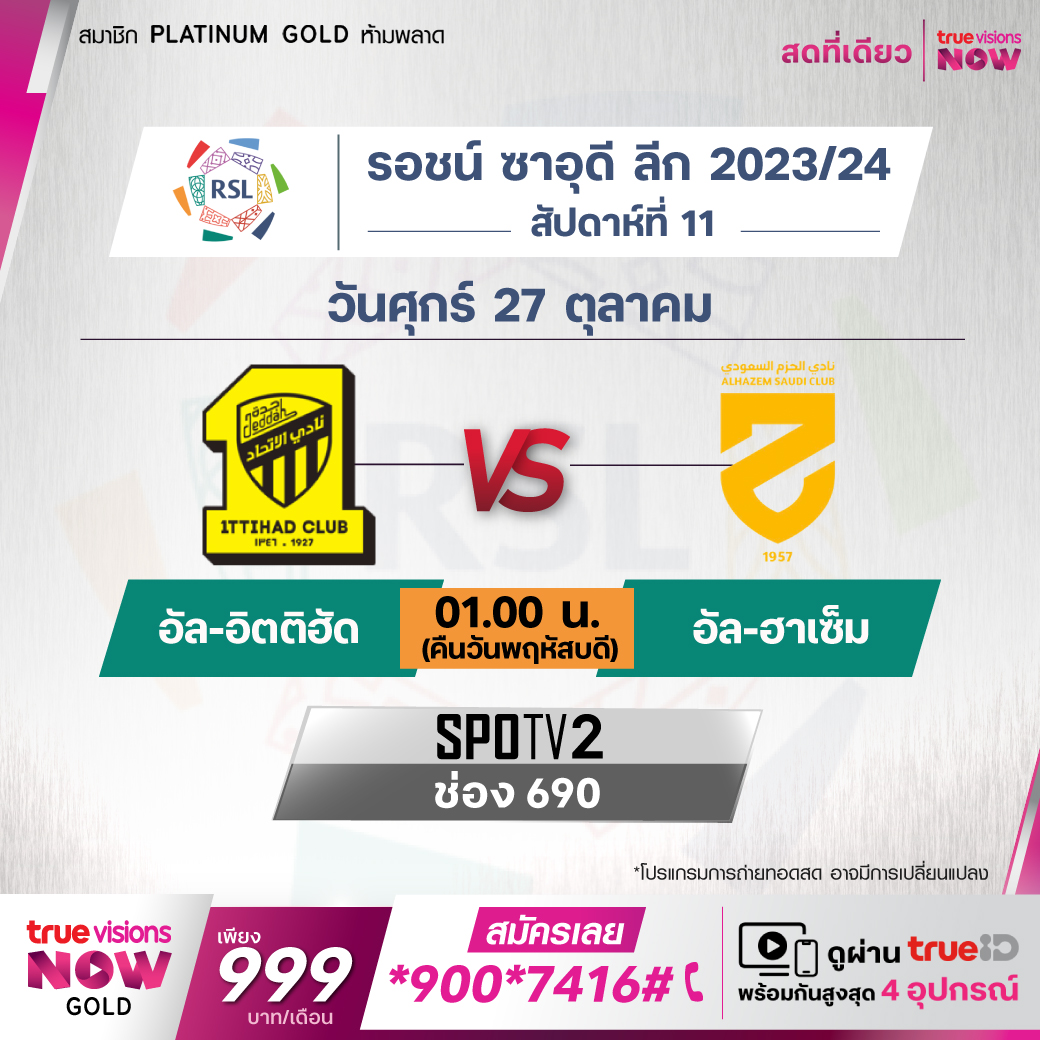 Al-Ittihad vs Al-Hazm เวลา 01.00-03.00 ทางช่อง SPOTV2 (690)