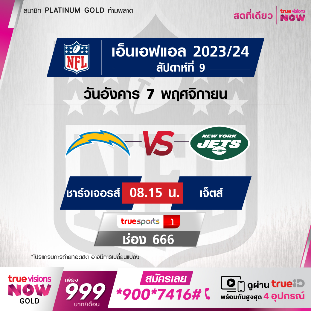 วันอังคาร 7 พ.ย. Chargers Vs Jets เวลา 08.15 ทางช่อง TS 1 (666)