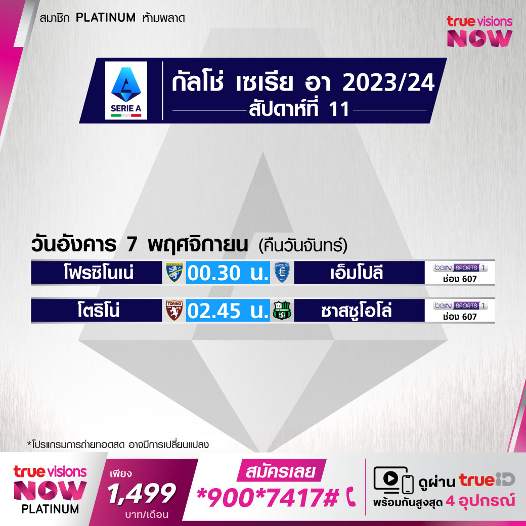 Torino vs Sassuolo เวลา 02.45-04.45 ทางช่อง beIN 1 (607)