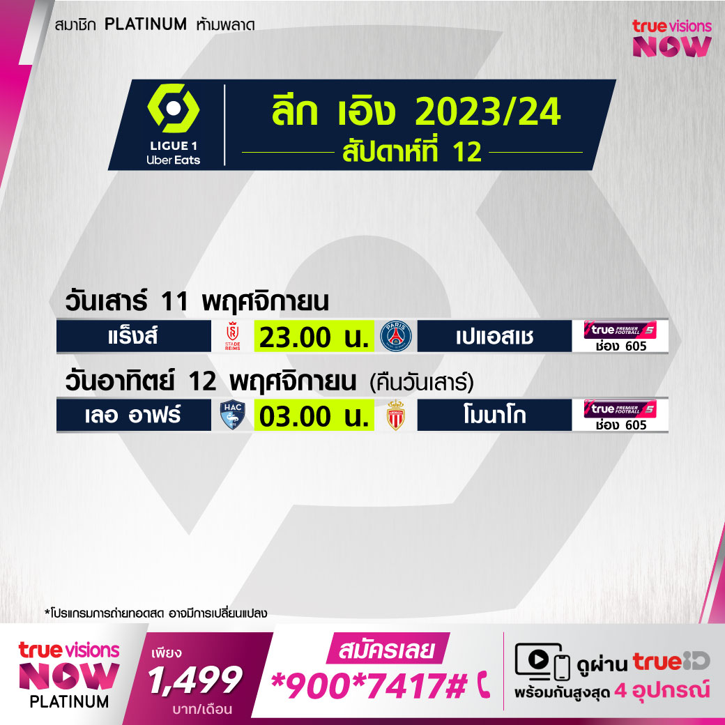 Reims vs PSG เวลา 23.00-01.00 ทางช่อง TPF 5 (605)